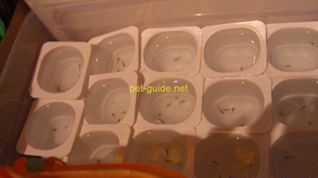 この頃はすでにヨーグルトの容器は手狭になっていたので、100均一でシューズboxを購入し、それを飼育容器にしていました。エサはブラインシュリンプのみです。