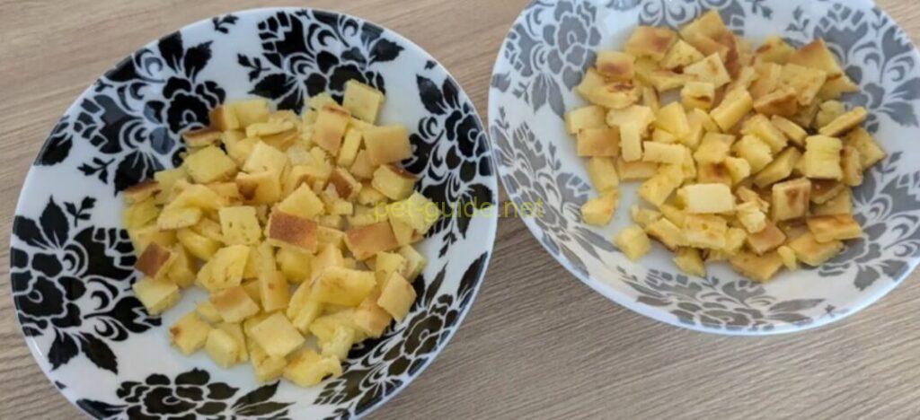 市販のおやつには小麦粉や添加物が入っていることが多く、割高でも安全性を考えて手作りのおやつを与えています。