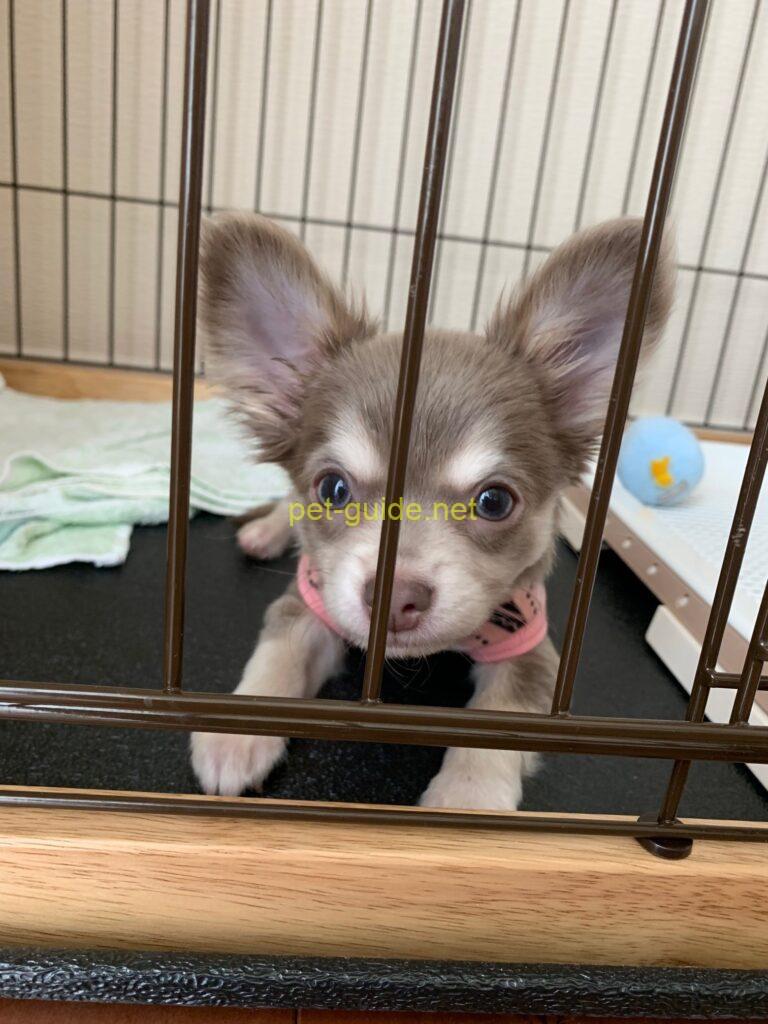 小さな身体に大きな瞳、お耳が垂れてこころなしか寂しそうな表情に見えた変わった色の子犬。イザベラタンという毛色のチワワの女の子でした。