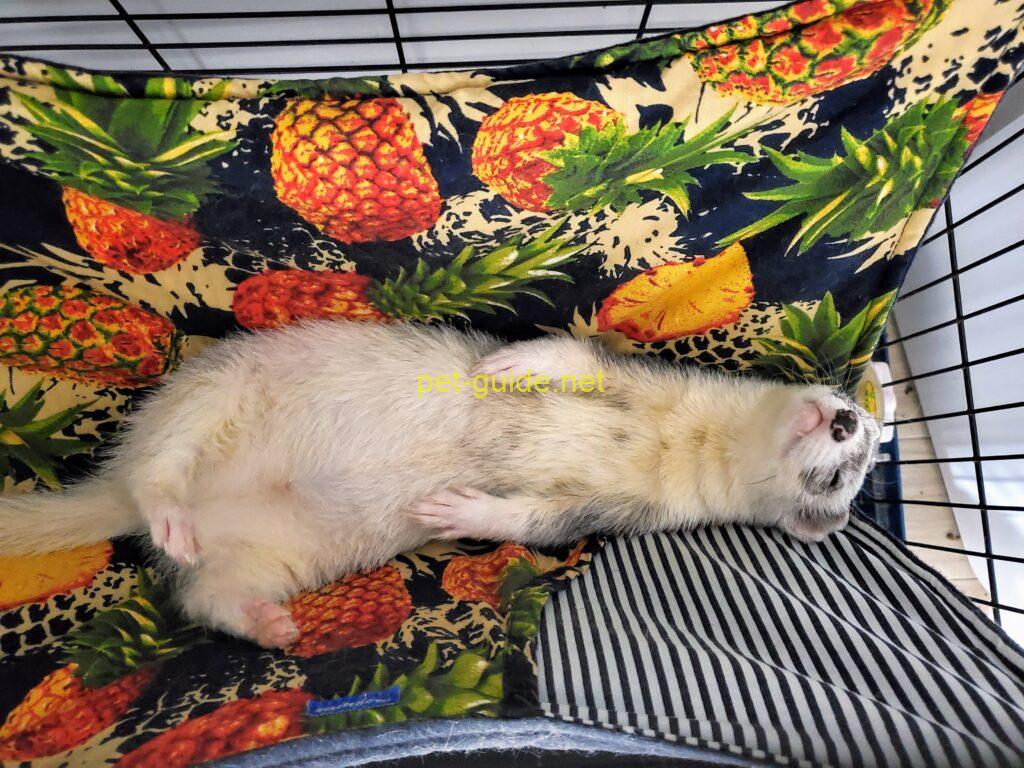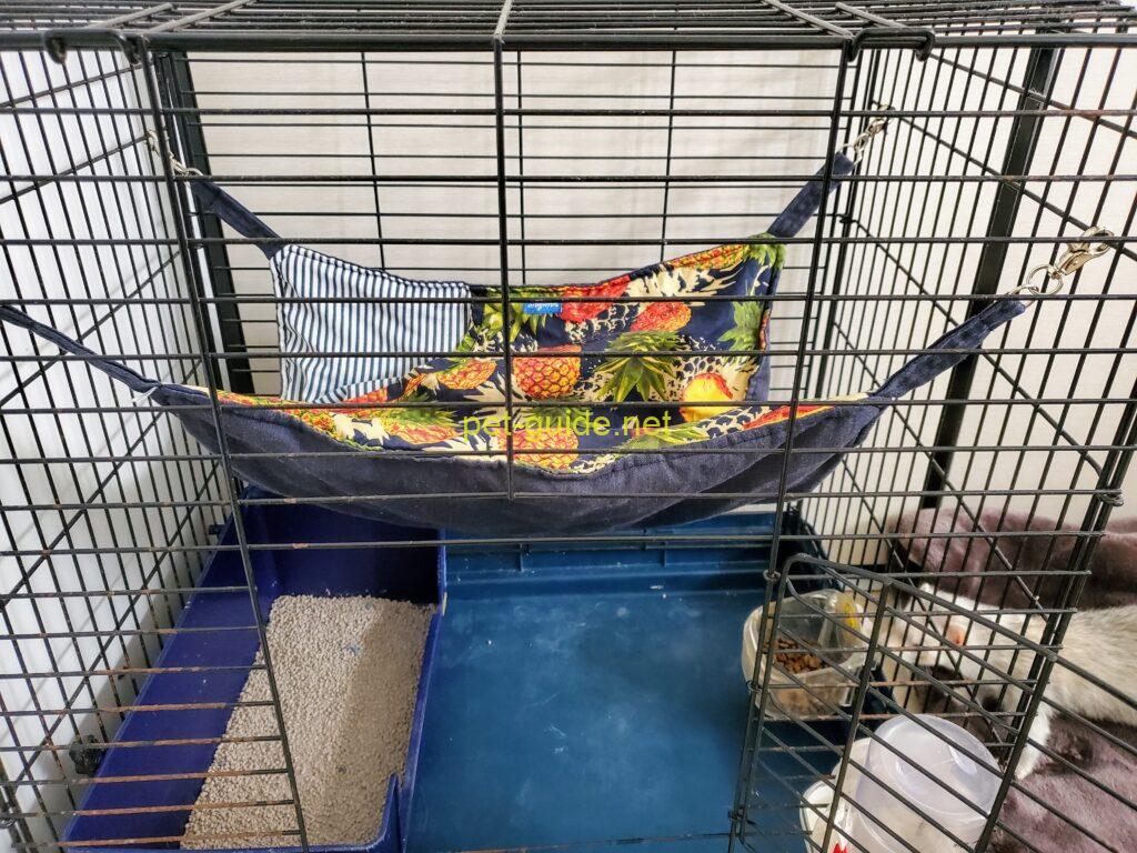 フェレットはケージの上部に吊るされたハンモックを寝床とすることを好みます。季節にあったものを用意しましょう。夏は涼しいメッシュ生地のもの、冬は暖かな厚い布を使ったものなどがおすすめです。数日に一度は取り替えてあげ、清潔を保ちましょう。