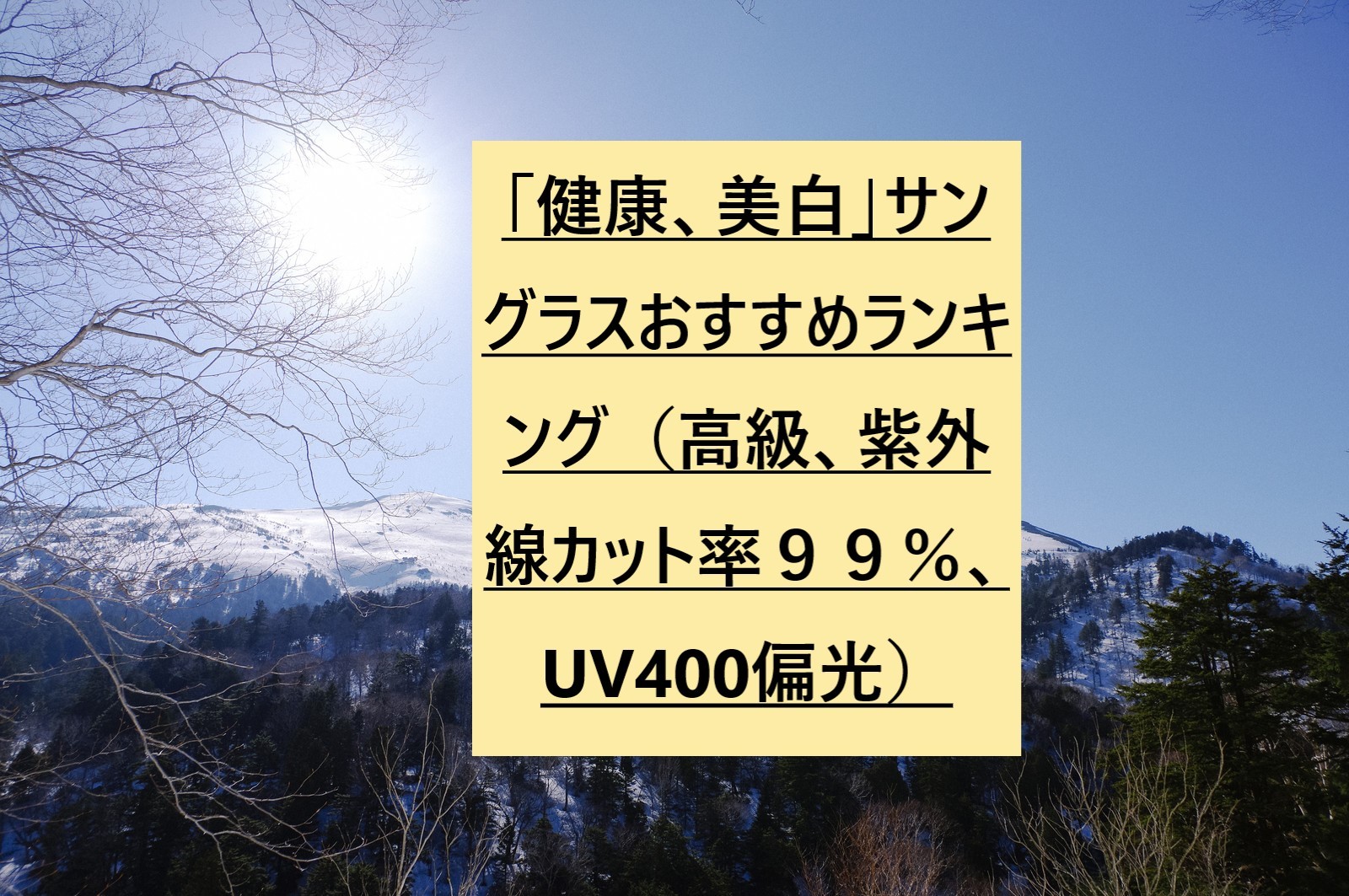 紫外線カット率99%以上または、 UV400のサングラスがおすすめです。 UV400とは紫外線A波(UVA)、紫外線B波(UVB)に対応しているものを指します。 UV300のものは紫外線B波(UVB)には一部対応しているものの、紫外線A波(UVA)には十分に対応できていません。実は探してもちゃんと書いてあるものは少なく、書いてあっても紫外線カット率が99%に満たない、UV300しかないということが多々あります。